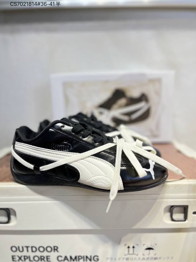 Rose X Puma Speedcat collaboration racing training double-lace-up casual sports low-top sneakers lead the trend with a fun and avant-garde retro design, integrating the spirit of racing into street fashion and starting an avant-garde racing journey. The Roma shoe features a retro streamlined shape on the side with the classic BMW logo, which is eye-catching. The Speedcat shoe features bright three-color stripes on the comfortable upper, giving it a unique aesthetic personality and interpreting the endless energy of racing. 404391 Cs7021814#36-41 half