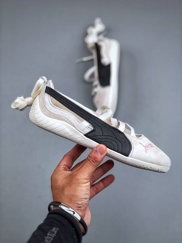 Rose X Puma Speedcat Comfortable and Versatile Ballet Strap Hollow Design Sweet Contrast Color Casual Shoes for Women in White and Black. Upgraded Quality Accessories Included. Original Archive Data Paper Last. Top-Grain Leather Crafted to Distinguish from Pre-Existing Versions. Item Number: 404395-01. Sizes: 35-40.
