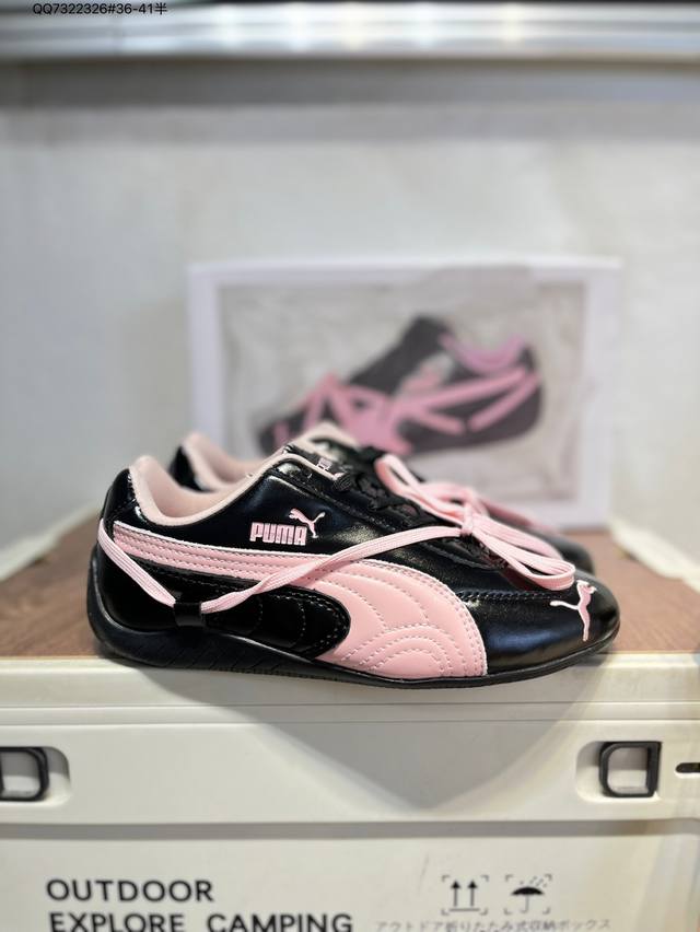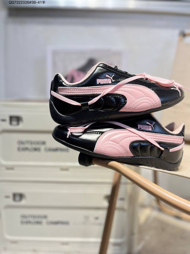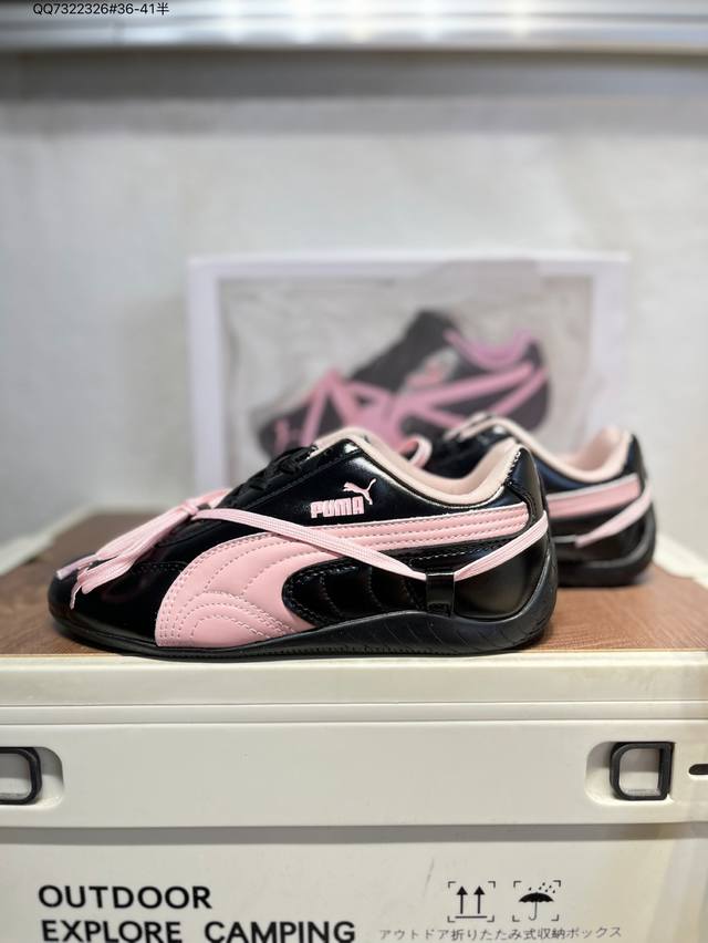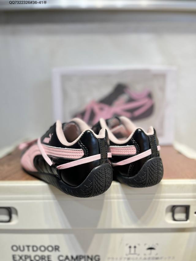 The Rose x Puma Speedcat collaboration features a racing-inspired, double-lace, low-top sneaker with a playful, retro design. It blends the spirit of the racetrack with street fashion, embarking on an avant-garde racing journey. The Roma's retro, streamlined side features the classic BMW logo, creating a striking eye-catcher. The Speedcat's striking tricolor stripes create a comfortable upper, lending it a unique aesthetic and embodying the unstoppable energy of racing. 404392 Qq7322326#36-41 Half