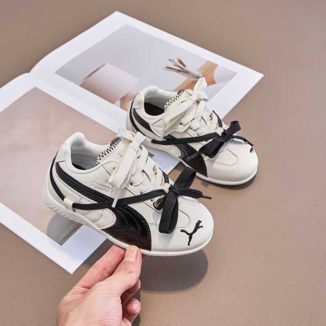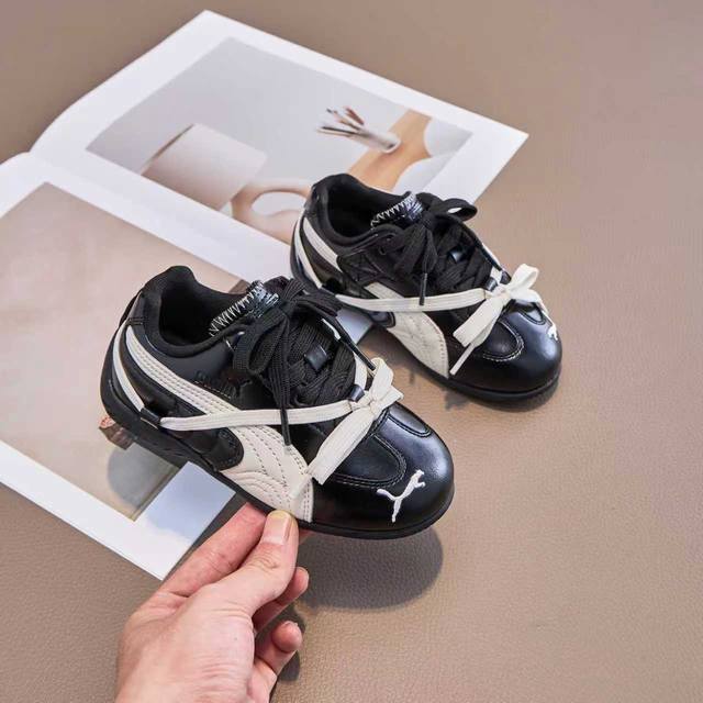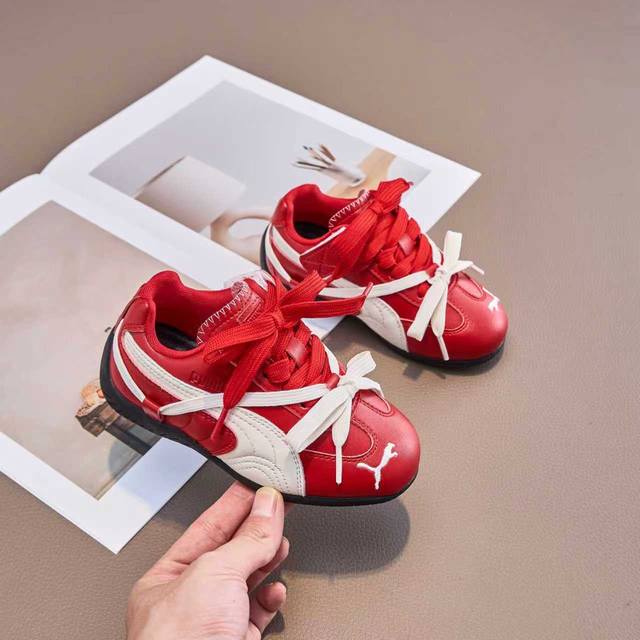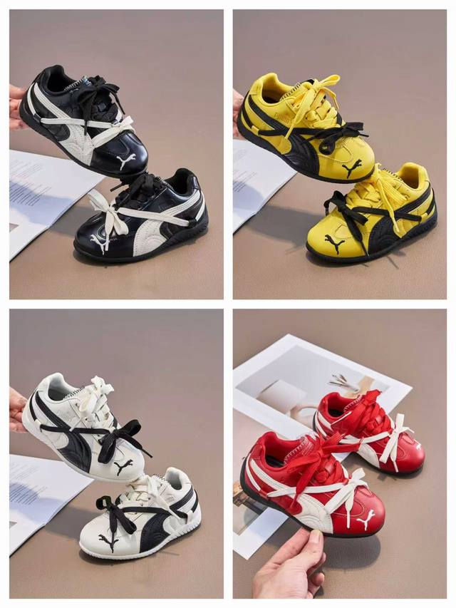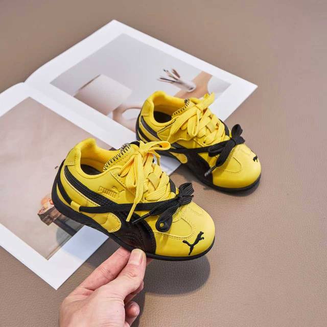 Puma double-lace inner Velcro children's shoes, sizes 26-37. Comfortable, versatile, retro casual racing shoes for children, thin-soled. Puma's high-speed racing series low-top shoes feature a silhouette that mimics the streamlined shape of a racing car, embodying aerodynamic principles.