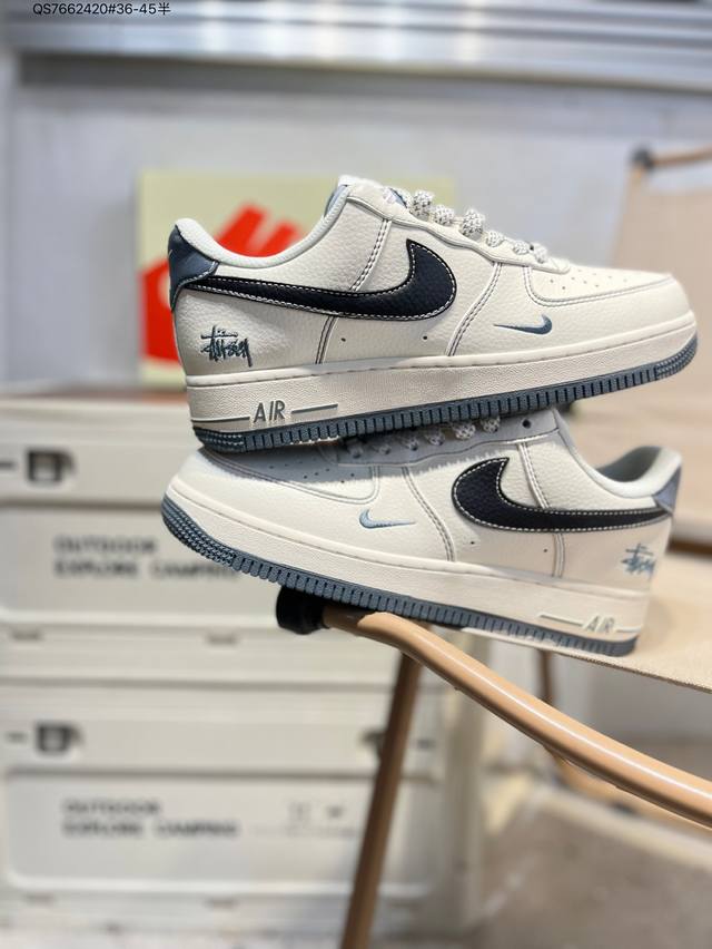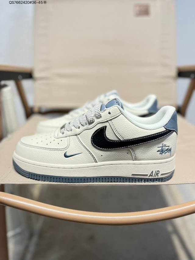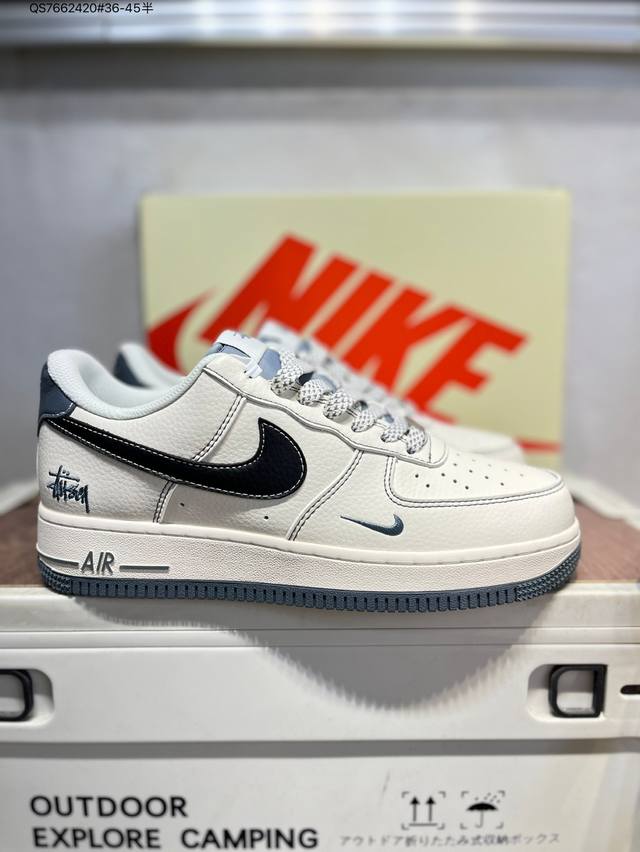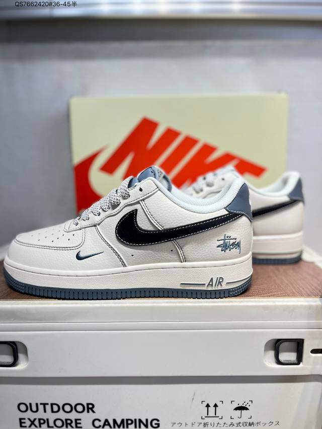 Stussy X NK Air Force 1'07 Low Air Force One Low-top Casual Sneakers#Custom leather, original last, original cardboard, pure Air Force version, high cleanliness, built-in full-palm air cushioning Xz6188 Qs7662420#36-45 half