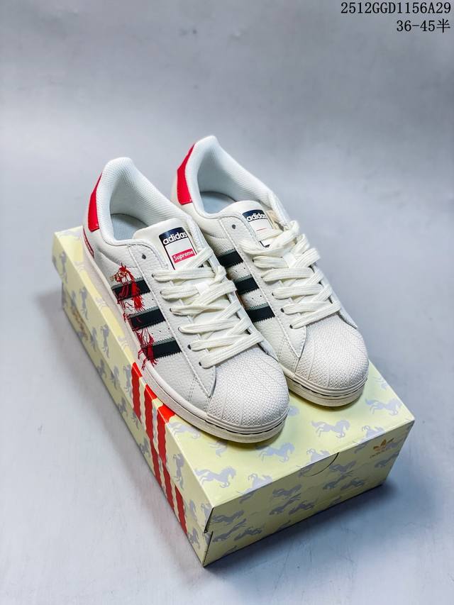 2026 New Limited Edition Ad Superstar Custom Colorway Trefoil Low-Top Casual Shell Toe Sneakers "Supreme Collaboration - Year of the Horse Limited Edition" Factory Grade Version, High-Quality Factory Production, Ultra-High Cleanliness, Clean Leather Cutting with No Rough Edges, Perfect Details Product Code: Jx8905 Sizes: 36 36.5 37 38 38.5 39 40 40.5 41 42 42.5 43 44 44.5 45 12Ggd1156A29