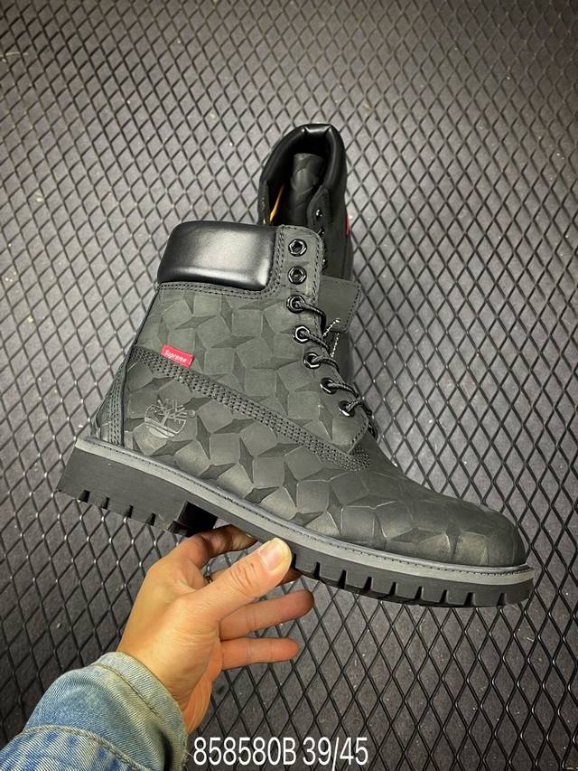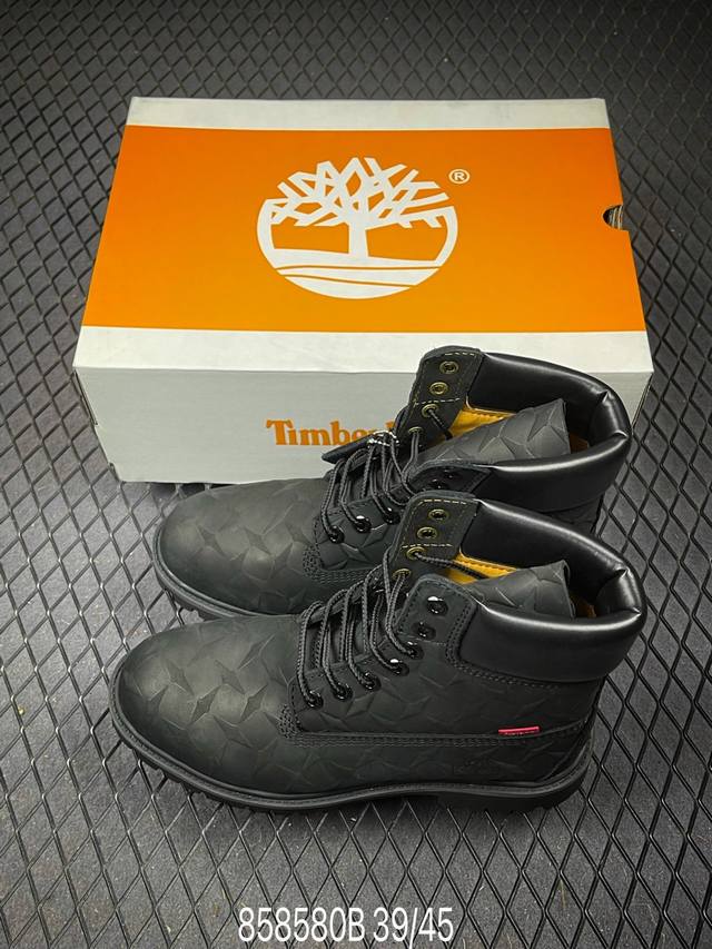 DDD Supreme X Timberland Yellow Boots Series, Simple and Comfortable Mid-Calf Martin Boots for Men, T-Shirt, Guangdong Factory Quality, Trendy Hot Selling Style, New Craftsmanship Upgrade, Original Factory Last, Export Trade Order, Original Box and Packaging, Equipped with Odor-Resistant and Anti-Corrosion High-Elasticity Honeycomb Latex Insoles for a Perfect Wearing Experience. High-Quality, Durable, a Must-Have for Stylish Men, Superb Foot Feel. Timberland Round Toe Lace-Up Short Martin Boots for Men, Black. DDD Sizes: 39-45 DDD Code: 858580B DDD