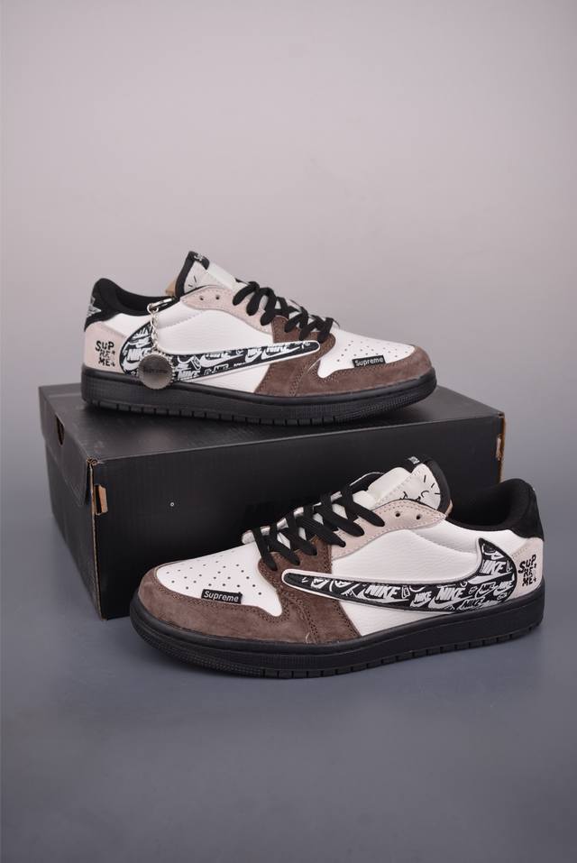 Fragment X Travis Scott X Supreme DDD Air Jordan 1 Low Three-Way Collaboration Reverse Swoosh DDD This new three-way collaboration low-top reverse swoosh shoe continues the black toe design, with the entire shoe crafted from pebbled leather. A white reverse swoosh adorns the midfoot, complemented by Travis Scott's iconic logo. The heel features Hiroshi Fujiwara's signature blue, completing Fragment Design's signature white, blue, and black design style. The left and right shoes are decorated with Travis Scott's ghost face and Jordan Wings respectively, showcasing the luxurious style of this three-way collaboration. Official Style Code: Dz5899 0322226 Sizes: 36 36.5 37.5 38 38.5 39 40 40.5 41 42 42.5 43 44 44.5 45