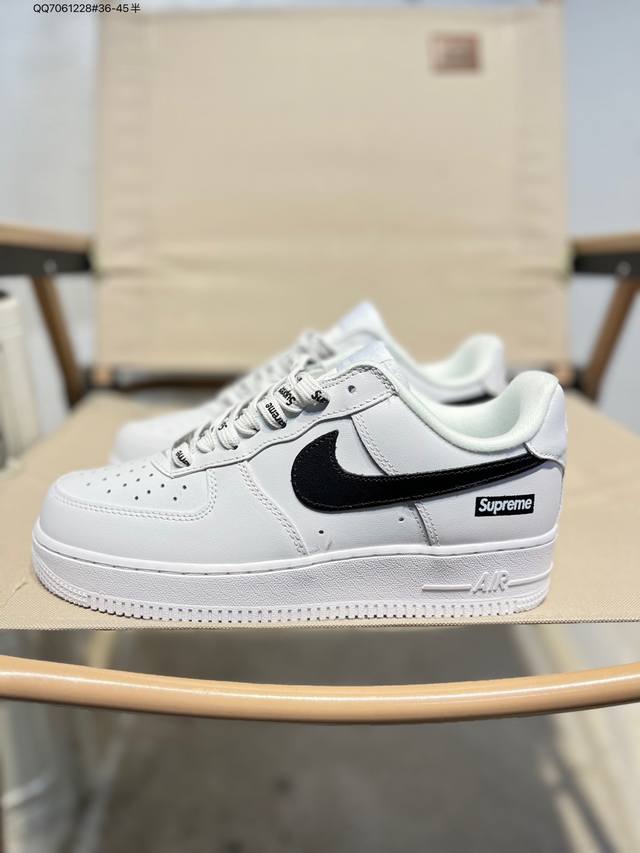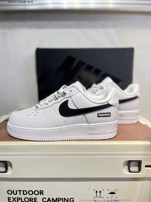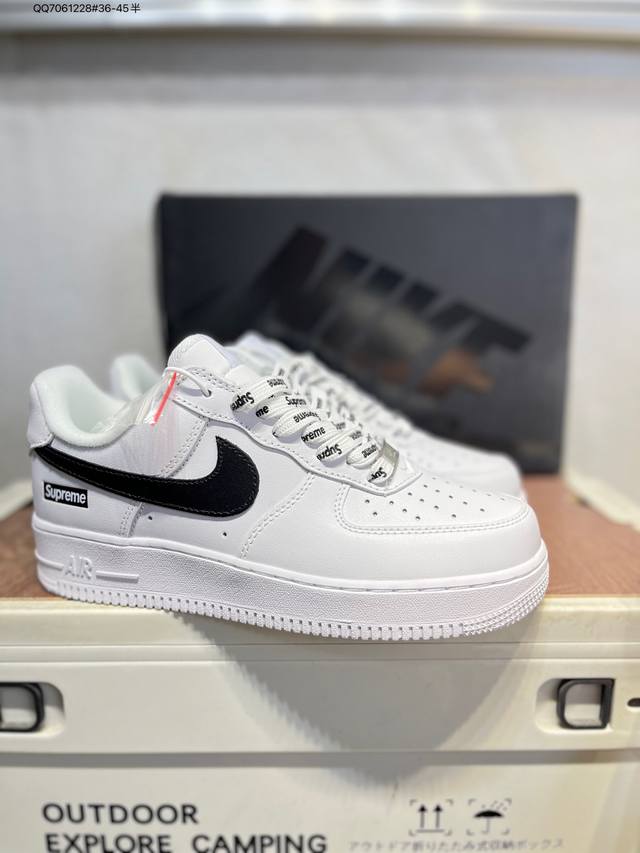 Supreme X Nike Air Force 1 '07, a versatile casual athletic sneaker. Soft, highly responsive cushioning and an excellent midsole design, combined with a retro-modern aesthetic, have made the Force 1 a global favorite for over thirty years. Cu9225 Qq7061228#36-45 half-DDD