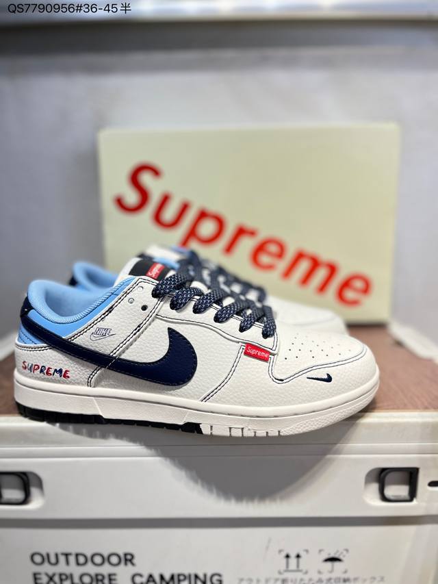 Supreme X Nike SB Dunk Low, Highly Recommended New Colorway from a Major Factory. Made with original top-grain materials and featuring exclusive steam-drying processing for a superior visual and tactile experience. High-quality factory-direct shipping with impeccable cleanliness. Features include electro-embroidery, clean leather cutting with no rough edges, and perfect details. FC1688 Qs7790956 #36-45.5