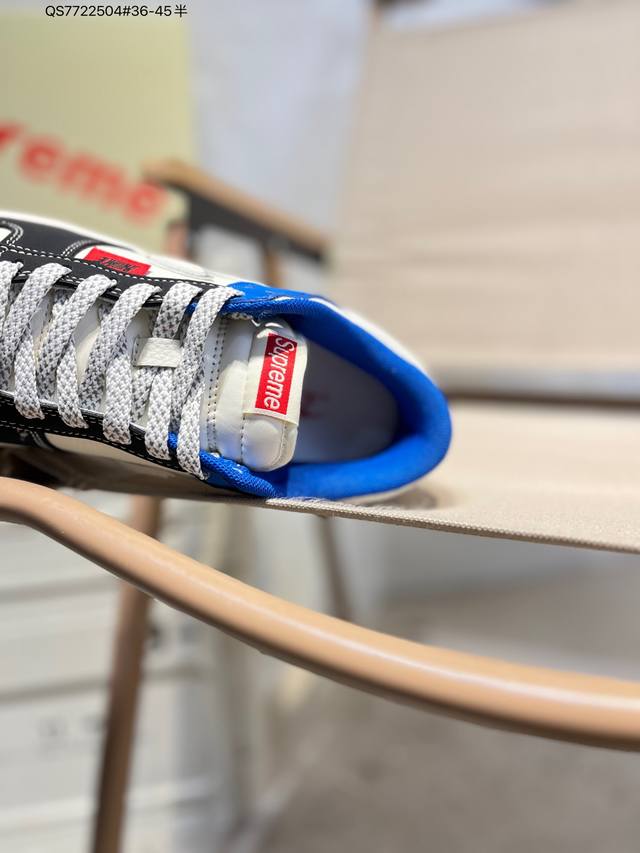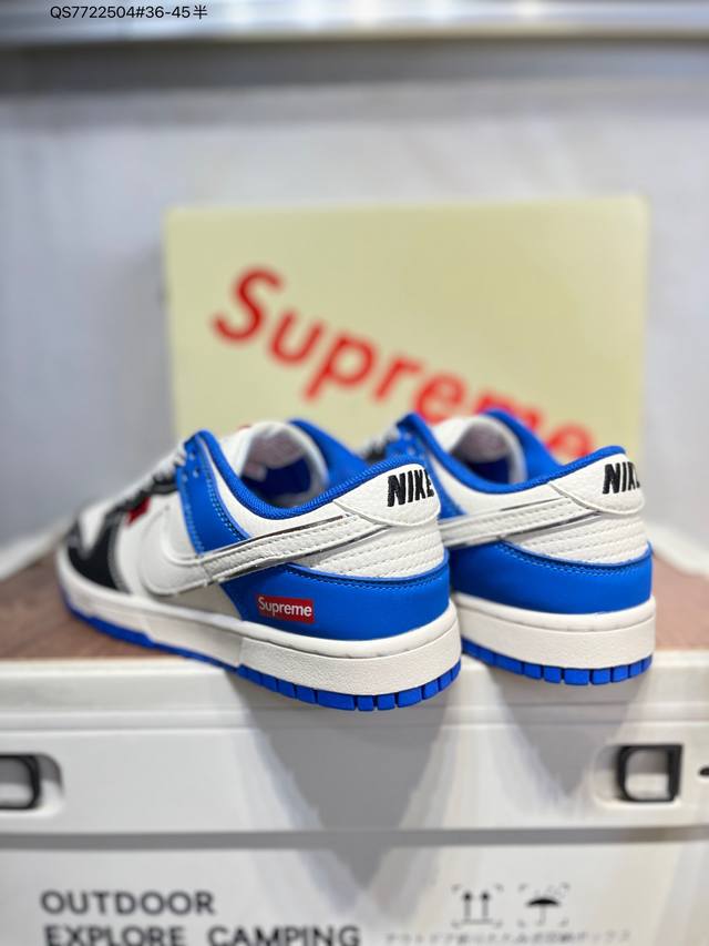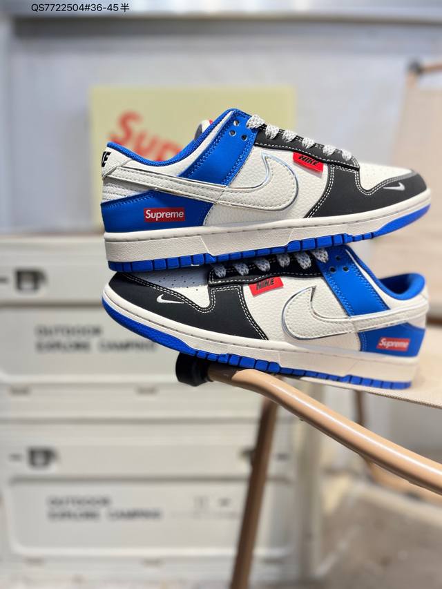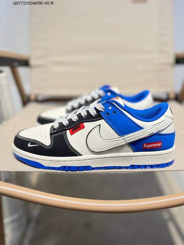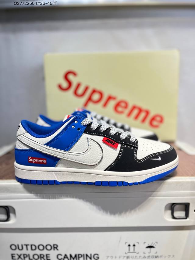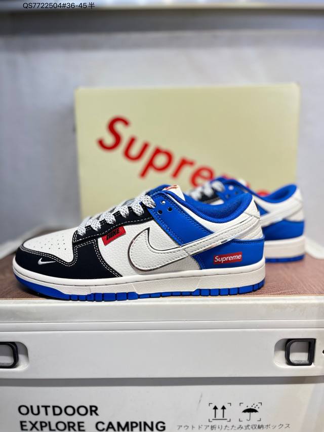 Supreme X Nike SB Dunk Low. Highly recommended new colorway from a major manufacturer. Made with original top-grain materials and a unique design using steam distillation. Offers a superior visual and tactile experience. High-quality factory-direct shipping. Excellent cleanliness. Features include electro-embroidery, clean leather cutting with no rough edges, and perfect details. Xd1588 Qs772 4# 36-45.5