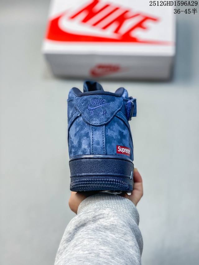 The charm of navy blue suede is perfectly embodied in this Supreme x Nike Air Force 1 Mid! The entire shoe is crafted from fine suede, the navy blue tone is calm and sophisticated, and it can even reveal the soft sheen of the suede under different lighting. The mini Swoosh on the side and the Supreme red label create a subtle echo. The classic mid-top Af1 silhouette is paired with a full-length Air unit, retaining a retro street style while still providing excellent comfort on the foot. From materials to details, every aspect perfectly caters to the aesthetic sensibilities of those who appreciate quality. This collaboration truly masters the art of "understated luxury." Product Code: Dv0788-006 Sizes: 36 36.5 37.5 38 38.5 39 40 40.5 41 42 42.5 43 44 44.5 45 12Ghd1596A29