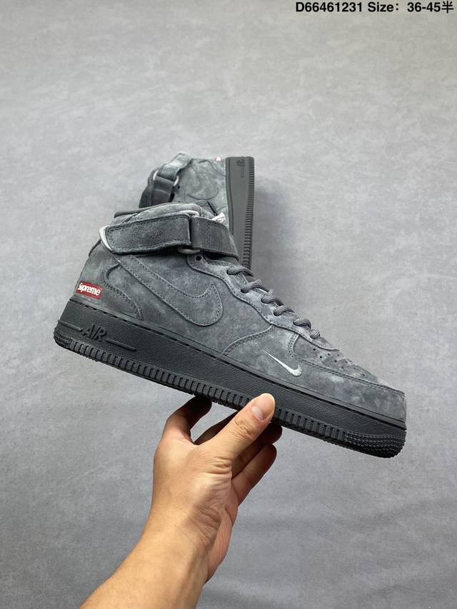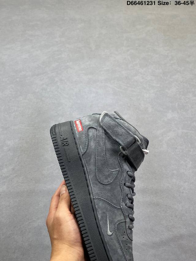 The charm of navy blue suede is perfectly embodied in this Supreme x Nike Air Force 1 Mid! The entire shoe is crafted from fine suede, and the navy blue tone is both sophisticated and elegant, revealing a soft sheen under different lighting conditions. The mini Swoosh on the side subtly echoes the Supreme red label, while the classic mid-top Af1 silhouette paired with a full-length Air unit retains a retro street style feel while maintaining excellent comfort on the foot. From materials to details, every aspect perfectly caters to the aesthetic sensibilities of those who appreciate quality. This collaboration truly masters the art of "understated luxury." Product Code: Dv0788-006 Sizes: 36 36.5 37.5 38 38.5 39 40 40.5 41 42 42.5 43 44 44.5 45 Code: D66461231
