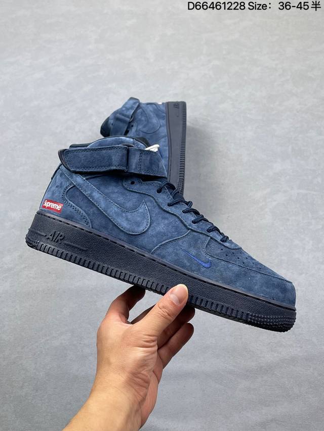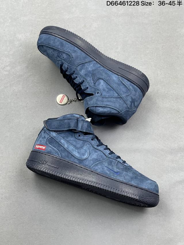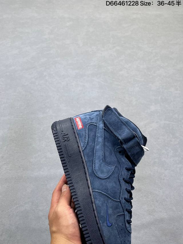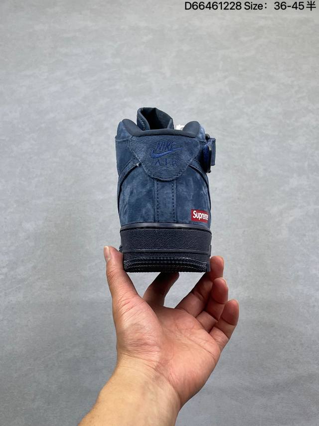 The charm of navy blue suede is perfectly embodied in this Supreme x Nike Air Force 1 Mid! The entire shoe is crafted from fine suede, and the navy blue hue is both sophisticated and elegant, revealing a soft sheen under different lighting conditions. The mini Swoosh on the side subtly echoes the Supreme red label, while the classic mid-top Af1 silhouette paired with a full-length Air unit retains a retro street style feel while maintaining excellent comfort on the foot. From materials to details, every aspect perfectly caters to the aesthetic sensibilities of those who appreciate quality. This collaboration truly masters the art of "understated luxury." Product Code: Dv0788-006 Sizes: 36 36.5 37.5 38 38.5 39 40 40.5 41 42 42.5 43 44 44.5 45 Code: D66461228