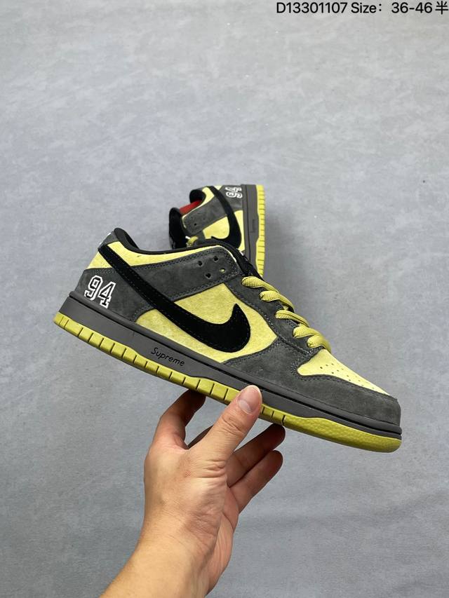 Top Layer with Half Size DDD The Supreme X Nike Dunk SB Low pro Og Supreme X Nike SB Low-Top collaboration features a predominantly black upper with a black frame overlay, making it highly versatile. The tongue features an embroidered Nike Swoosh logo, while the Swoosh logos on the sides are accented in black. The heel counter is adorned with black leather, and the mesh tongue enhances breathability. The heel features black embroidered Nike lettering and the number 94, the founding year of Supreme, engraved on the heel. The midsole also features the Supreme name, highlighting the collaboration. Finally, a black midsole and matching rubber outsole complete the design. DDD Product Code: Hq8487-001 DDD Sizes: 36 36.5 37.5 38 38.5 39 40 40.5 41 42 42.5 43 44 44.5 45 46 DDD Code: D13301107
