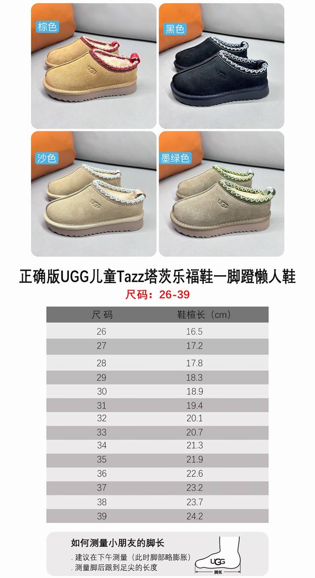 Ugg Correct Version Children's Tazz Loafers Slip-on Size Chart DDD Measuring foot length is key to choosing the right size DDD Different brands and series of shoes may have different sizes. Be sure to measure your baby's foot length and refer to the size chart to choose the appropriate size DDD A child's foot length will change in 3 months. Taking an extra minute to choose the right size can save you a week of waiting time for size changes DDD