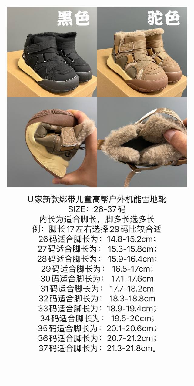 U's New Lace-up Children's High-Top Outdoor Functional Snow Boots DDD Size: 26-37 DDD Fleece-lined and thickened, warm and comfortable DDD Lace-up Velcro design, easy to put on and take off DDD Outdoor functional style, fashionable and stylish DDD