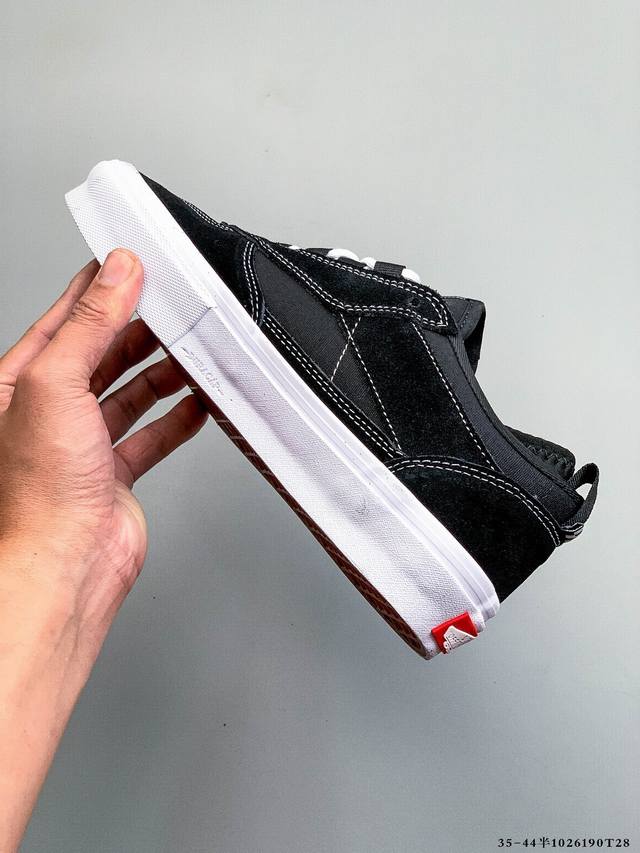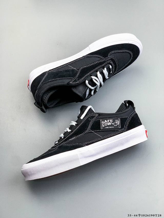 New Authentic Vans Safe Brady Collaboration Sneakers by Rory Milanes. This Vans x Danny Brady collaboration sneaker is the Safe Low, part of the professional signature shoe series. Released in Spring 2017, it uses environmentally friendly adhesive bonding technology, and retains handcrafted details on the shoe's upper. The Safe Low features a low-top design, with a blue and black colorway. The entire shoe is constructed from blue suede, with black accents on the laces, tongue, lining, and trim. The name on the side labels has been changed to the collaborative shoe name, Safe Low. (