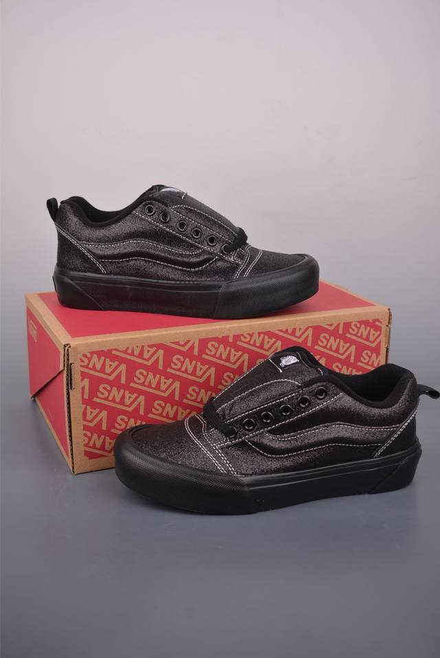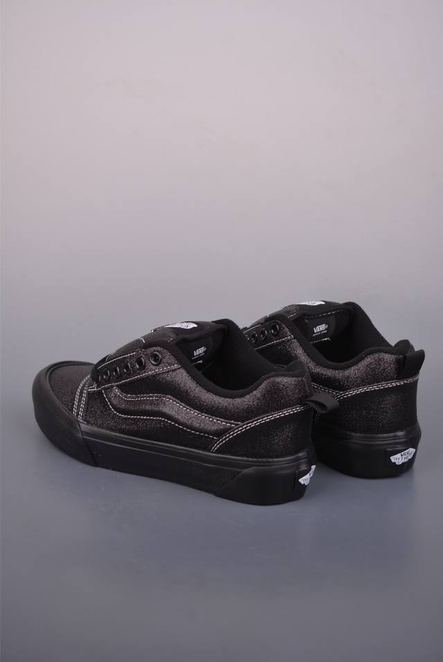 Vans Knu Skool Pearl Suede Classic Wide-Leg Black Samurai Suede Shoes with Pearlescent Finish. Sizes: 35 36 36.5 37 38 38.5 39 40 40.5 41 42 42.5 43 44 45