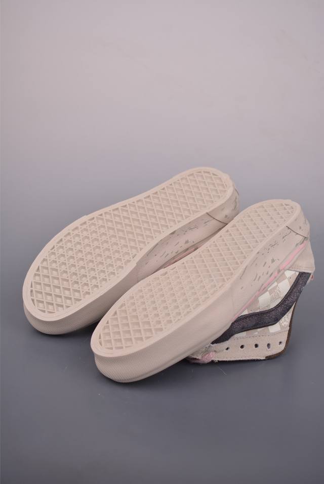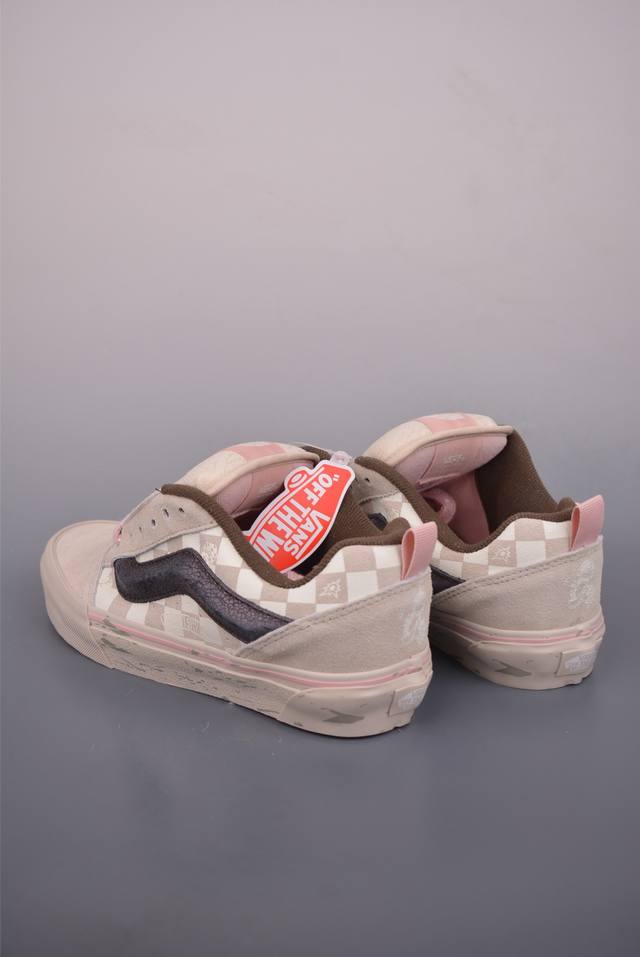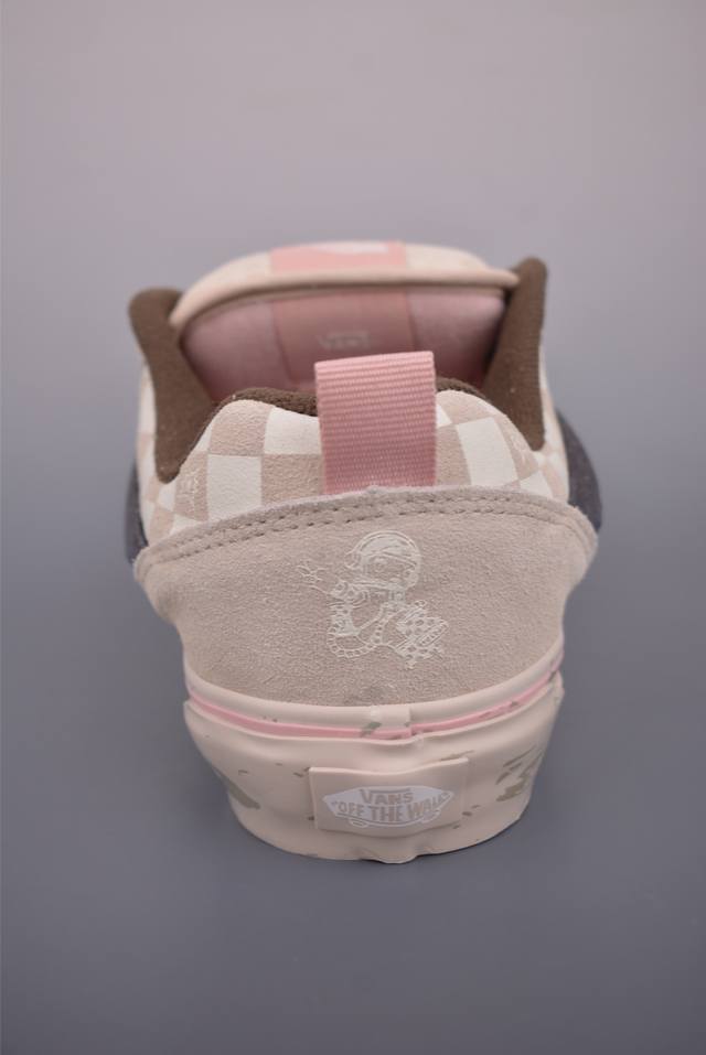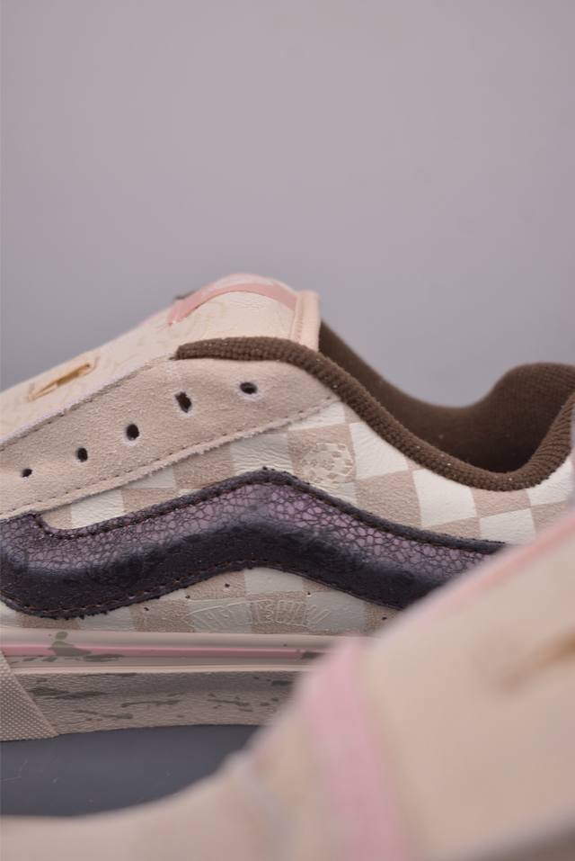 Pop Mart Collaboration. This collaboration, themed "Keep Imagining, Keep Exploring," uses the Space Molly character to create a warm contrast between off-white and pink, echoing the winter atmosphere. The three-dimensional side stripes subtly reveal fragmented skateboard graffiti details, while the checkerboard pattern is adorned with an embossed collaborative logo, showcasing meticulous attention to detail.