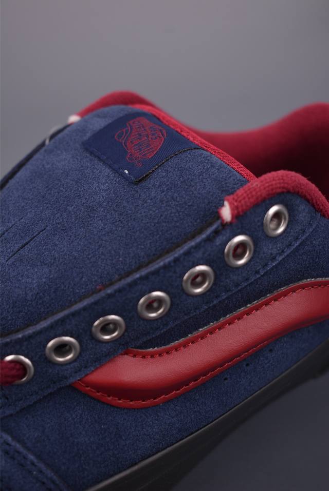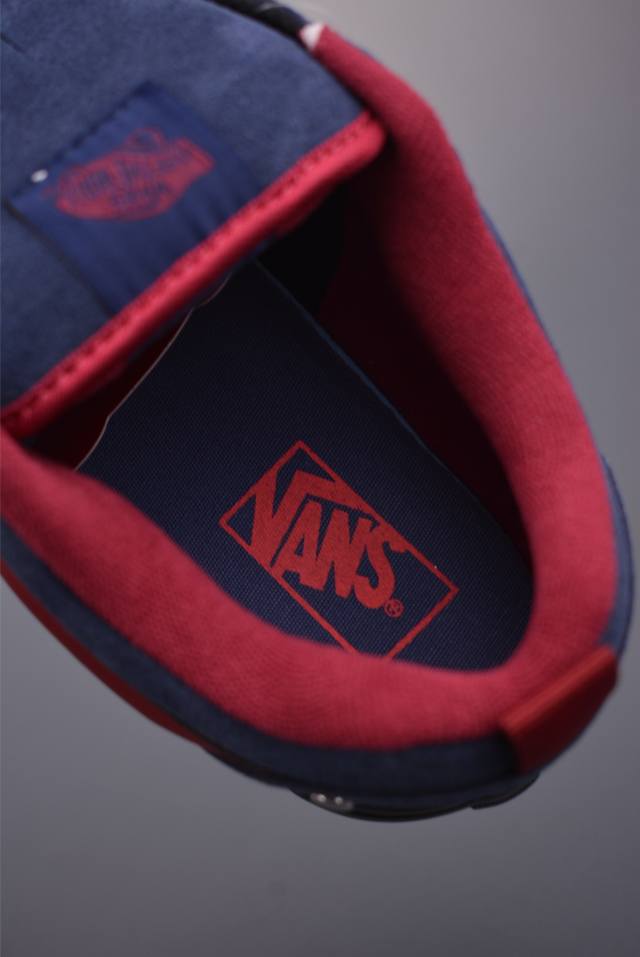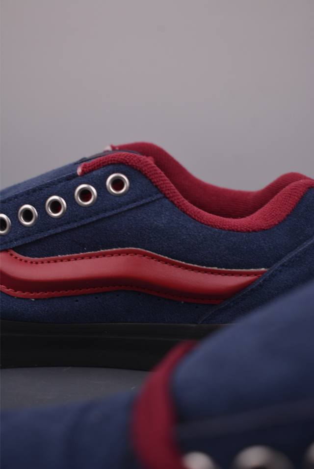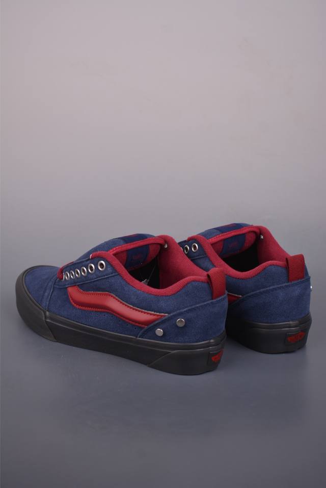 Vans Knu Skool Studded Navy Blue & Burgundy Official New Retro Casual Chubby Shoes. This design highlights studs, featuring the iconic 3D logo on the suede upper for a premium feel. The heel also incorporates studs, giving it a strong retro street style. Sizes: 35 36 36.5 37 38 38.5 39 40 40.5 41 42 42.5 43 44 45